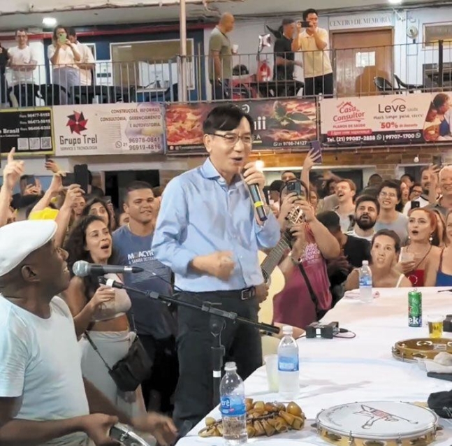 지난 15일(현지 시각) 임 대사는 리우에서 손꼽히는 유명 삼바 공연장 헤나센사(Renascença Clube)에서 브라질 인기 삼바 그룹과 함께 공연했다. 그는 브라질 삼바계의 ‘전설’로 꼽히는 아도니랑 바르보사의 노래를 부르며 청중으로부터 뜨거운 환호를 얻었다. 이 클럽의 삼바 무대에 현직 외국 대사가 초청된 것은 임 대사가 처음으로 알려졌다. 현지 매체들은 “임 대사의 공연은 감정과 에너지로 가득 차있다”고 평했다.
